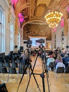 • L’organisation d’un évènement hybride avec à la fois des intervenants en présentiel et des intervenants à distance, ce qui permet à certains orateurs de participer sans avoir à se rendre sur place ;